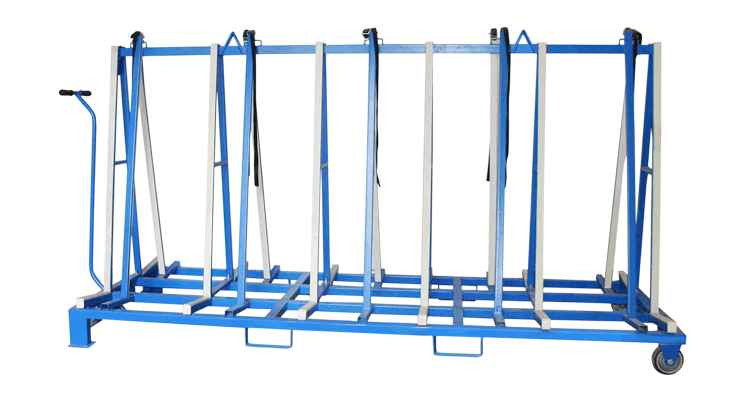 此設計用于廠區內外的板材運輸和儲存,支架表面覆蓋一層橡膠層,保護板材免于刮傷。